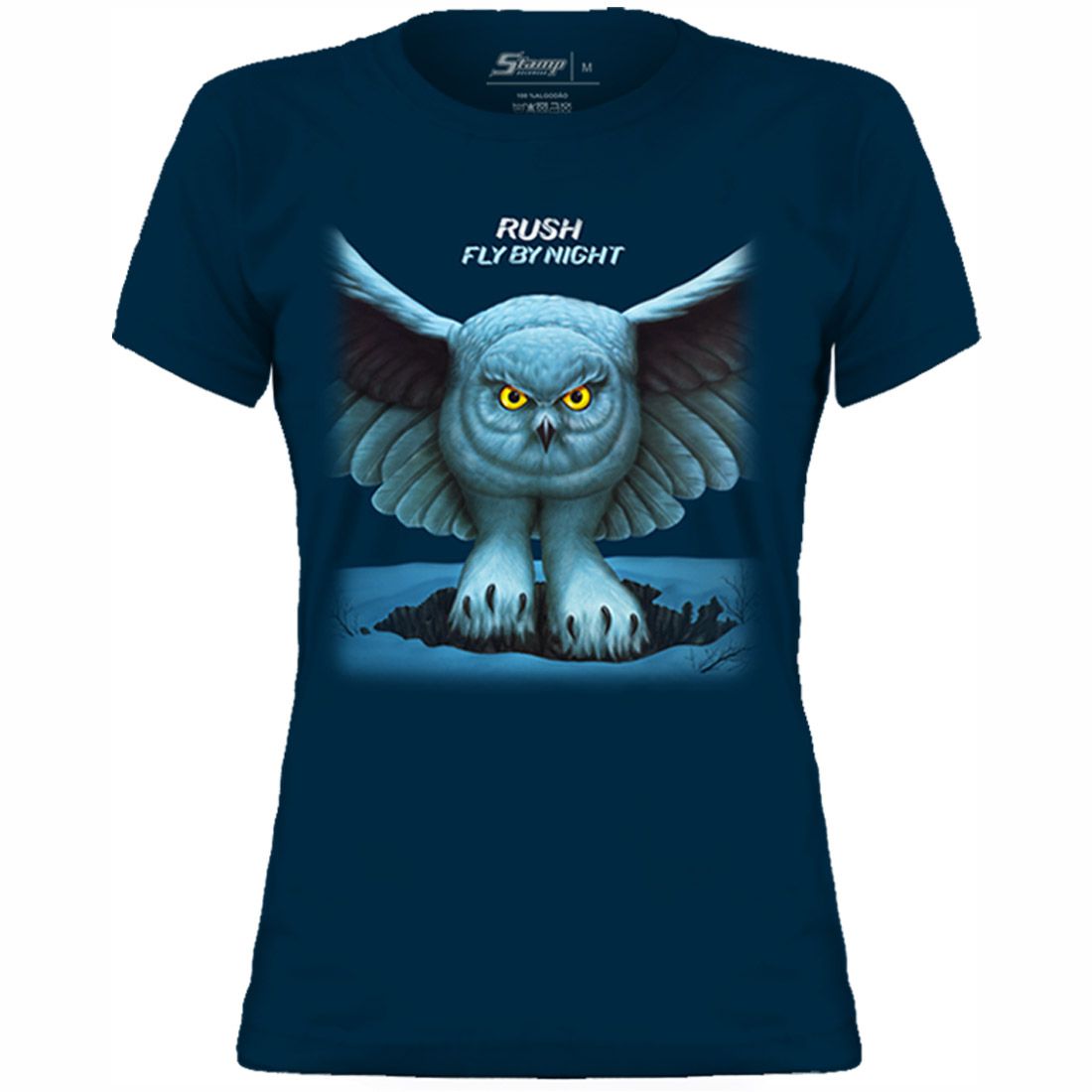 Estampa em silk-screen de alta qualidade. Malha penteada 100% algodão. Cor da malha: Azul Marinho. Gola com elastano. Reforço interno ombro a ombro.